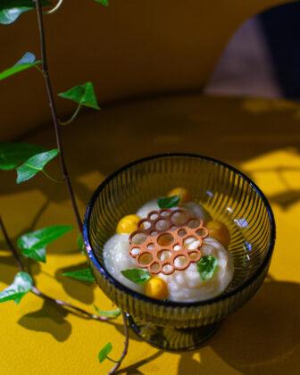 - Danie główne: Sandacz sous-vide – wolnogotowany sandacz serwowany z sosem beurre blanc z dodatkiem dashi miso, chrupiącym pak choi i karmelizowaną marchewką.