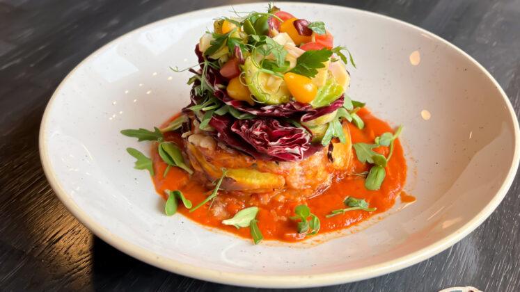 - Danie główne: Lasagne z warzywami, selerem naciowym, pomidorami, cukinią, bakłażanem, beszamelem, mozzarellą i grana padano podana z sosem z pomidorowo paprykowym i sałatą radicchio, brukselką, karczochami, pomidorami koktajlowymi, papryczkami peperoni i winegretem wiśniowym.