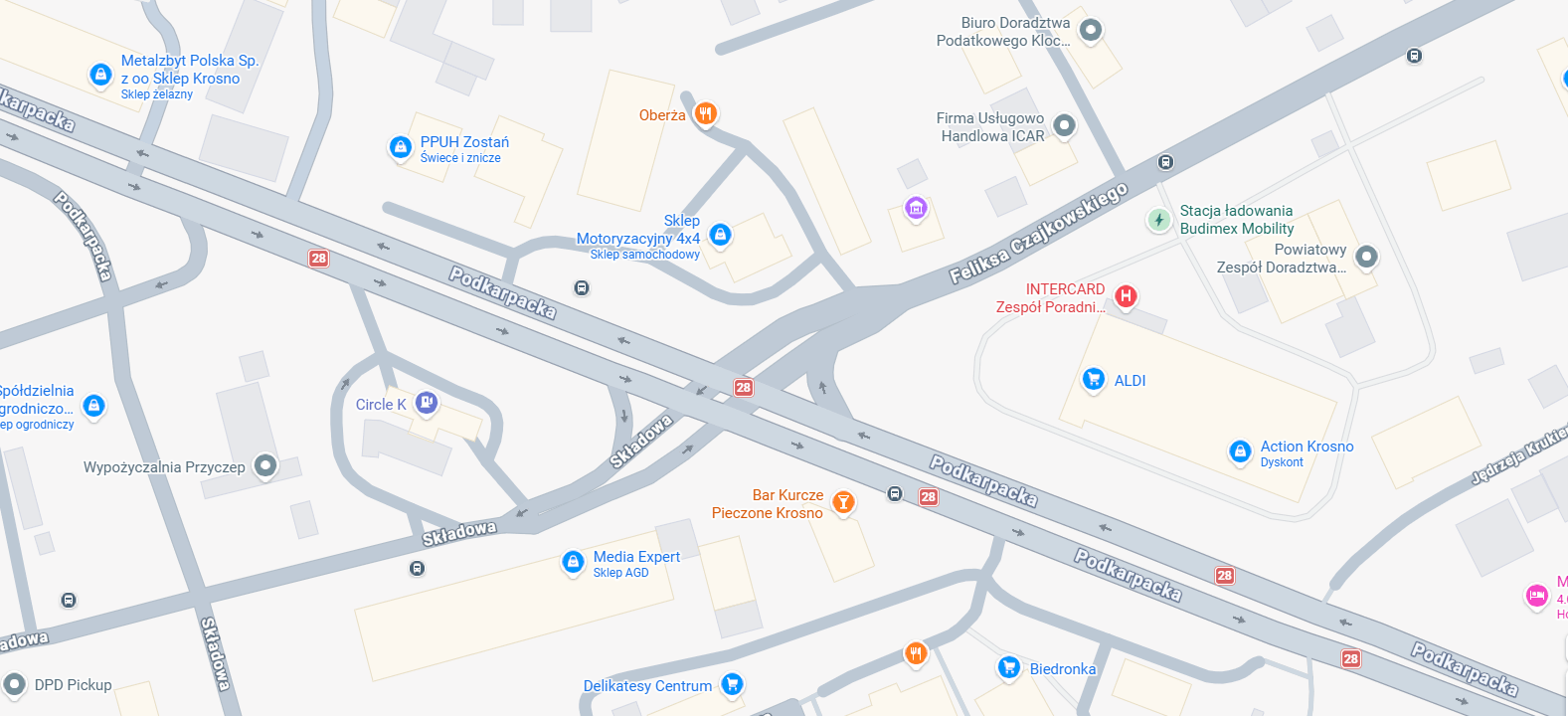 Prace drogowe związane są z wykonaniem zjazdu w prawo z drogi krajowej nr 28 do pawilonów handlowych przy ul. F. Czajkowskiego 55.