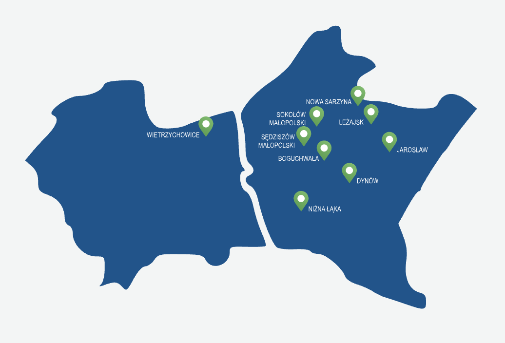 SIM Podkarpacie to spółka utworzona przez 7 gmin – Boguchwałę, Dynów, Jarosław, Leżajsk, Miejsce Piastowe, Nową Sarzynę i Sędziszów Małopolski oraz Krajowy Zasób Nieruchomości.