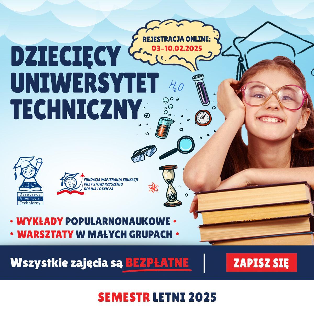 W poniedziałek (3 lutego) rozpocznie się rekrutacja na semestr letni 2025 Dziecięcego Uniwersytetu Technicznego w Rzeszowie. Warsztaty i wykłady, organizowane na Uniwersytecie Rzeszowskim, są całkowicie bezpłatne.