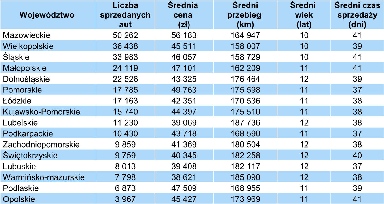 Z październikowego raportu Grupy AURES Holdings wynika, że w województwie podkarpackim sprzedano łącznie 10 430 samochodów używanych. Daje nam to dziesiąte miejsce w kraju pod względem wolumenu sprzedaży. Daleko nam do liderów – w województwie mazowieckim nabywców znalazło ponad 50 tys. aut, a w wielkopolskim ponad 36 tys. Wyprzedzamy jednak m.in. województwo zachodniopomorskie (9 859 szt.) czy świętokrzyskie (9 759 szt.).