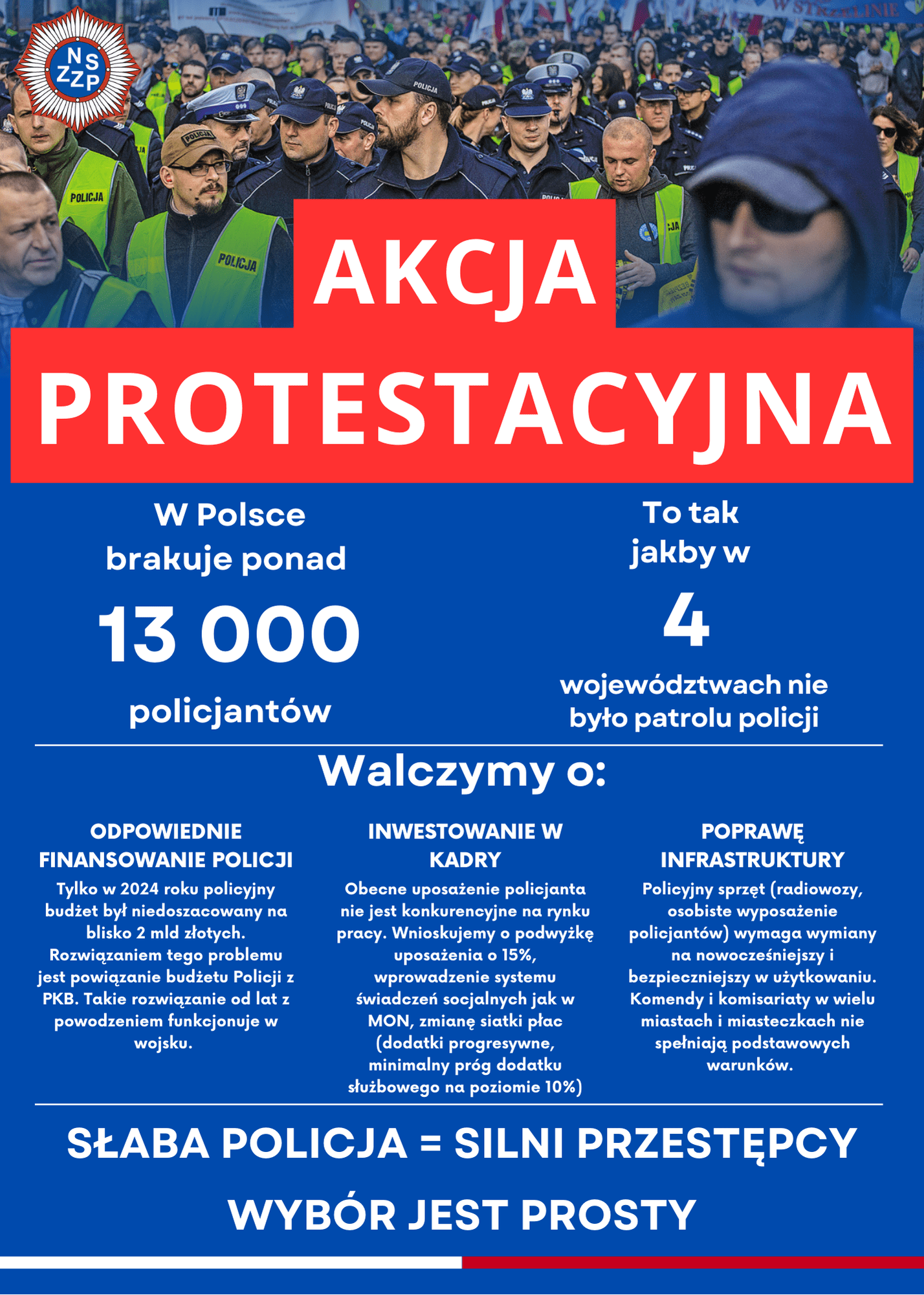 Związkowcy akcentują, że akcja protestacyjna ma na celu obronę godności funkcjonariuszy, poprawę warunków pracy w policji oraz zapewnienie, że służba ta będzie w przyszłości w pełni efektywna i profesjonalna.