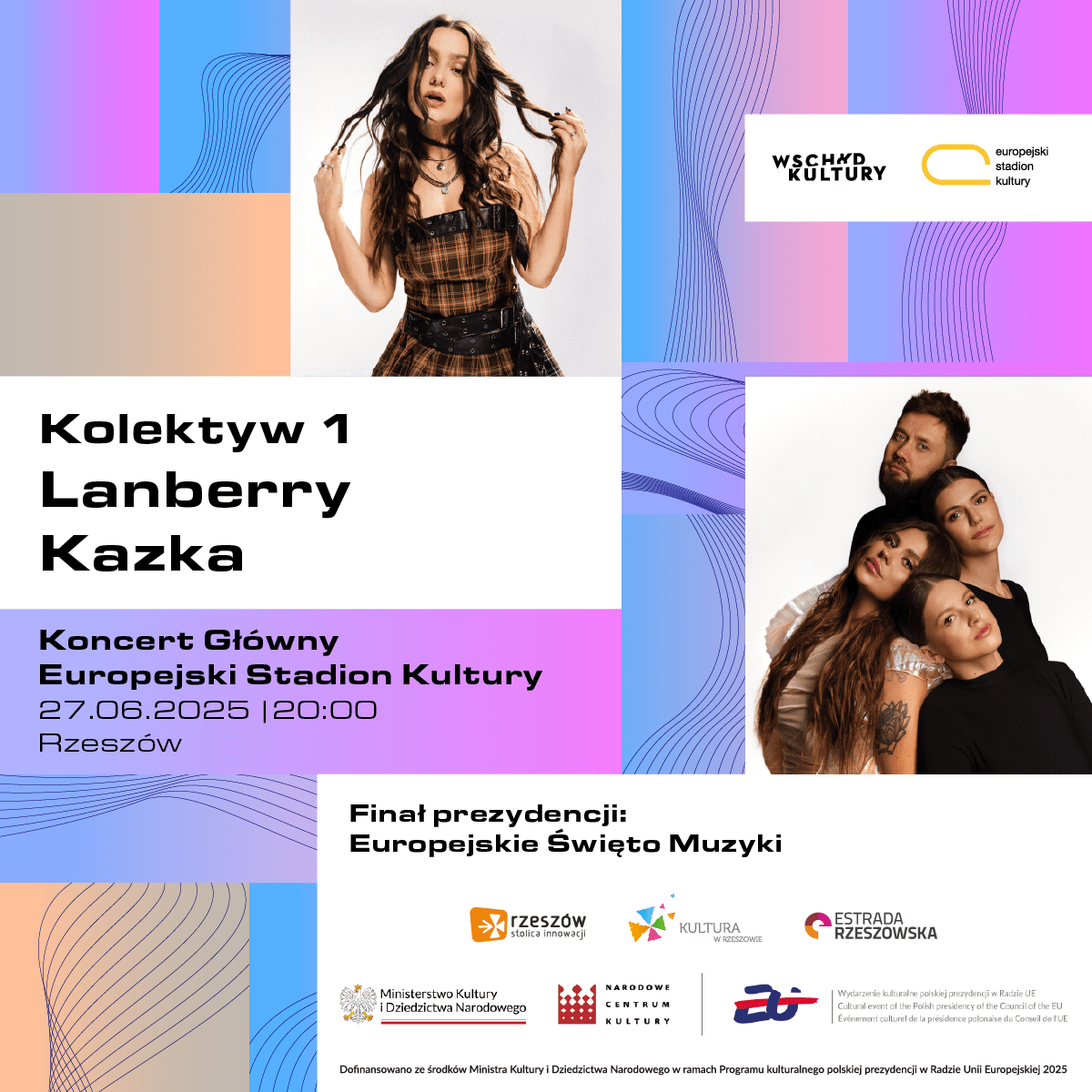 Wschód Kultury – Europejski Stadion Kultury w Rzeszowie zapowiada się jako jedno z największych wydarzeń tego roku. Organizatorzy podali pierwsze nazwiska artystów, którzy wystąpią podczas finałowego koncertu polskiej prezydencji w Radzie UE. 27 czerwca na scenie zobaczymy muzyczny kolektyw, który połączy twórców z różnych stron Europy, w duchu hasła „Kultura jest wspólna”.