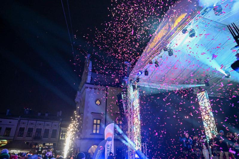 Kulminacyjnym punktem było tradycyjne „Światełko do nieba”, które w Rzeszowie przyjęło formę widowiskowego pokazu z konfetti i efektami świetlnymi, co dokumentują zdjęcia z rzeszowskiej sceny.