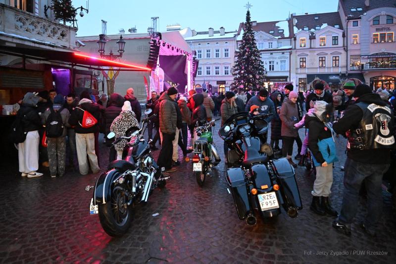 Na scenie oraz wśród tłumu panowała atmosfera jedności. Na załączonych fotografiach widać uśmiechnięte twarze wolontariuszy i darczyńców w każdym wieku. Szczególną uwagę zwracają rzeszowscy motocykliści, którzy swoimi maszynami uatrakcyjnili wydarzenie, oraz kolorowe występy artystyczne.