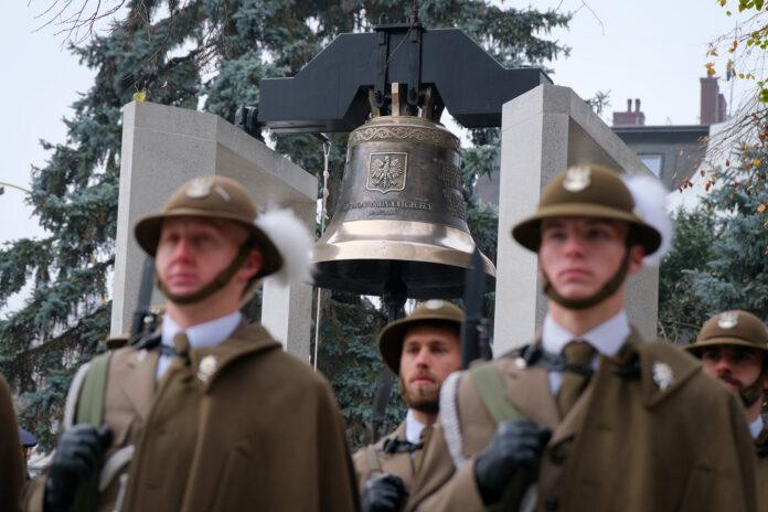 Młodsi i starsi, z radością uderzali dziś w Dzwon Niepodległości.