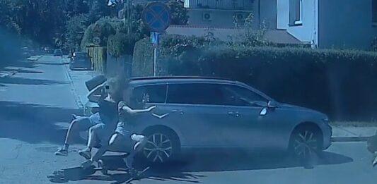 Rzeszów: Uderzyły hulajnogą w samochód i uciekły. Policja publikuje szokujące nagranie [WIDEO]
