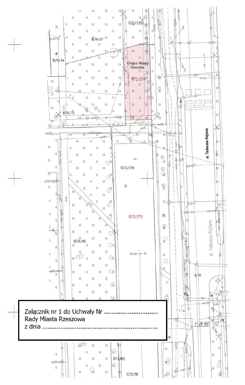 Działka o powierzchni  275 mkw. położona jest w obrębie Nowe Miasto przy ul. Rejtana. Plan zagospodarowania tego terenu mówi o szeroko rozumianych usługach, administracji, bezpieczeństwa publicznego, parkingów, usług ochrony zdrowia i zieleń. Działka jest otoczona prywatnymi nieruchomościami związanymi z firmą Bodzio Meble.