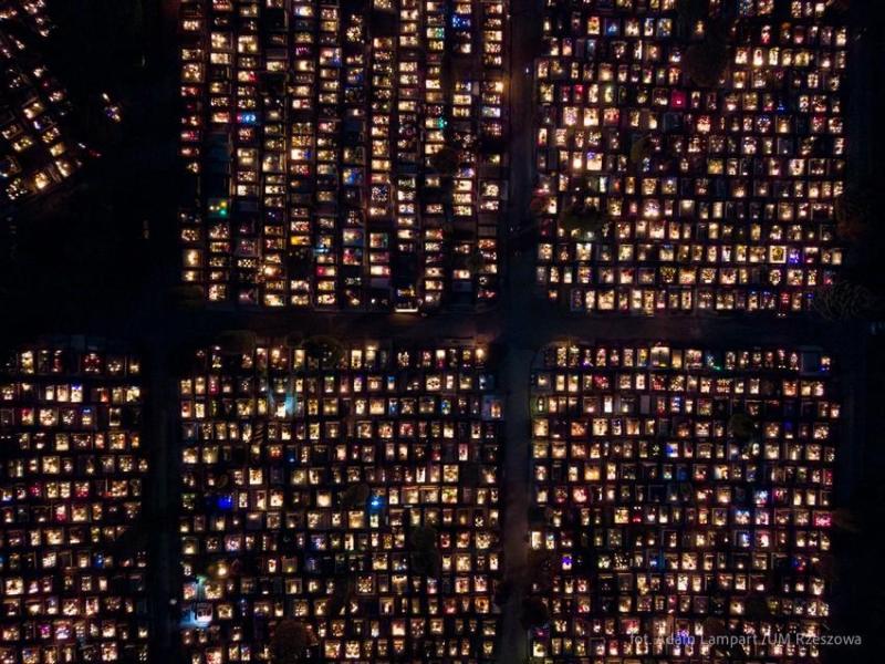 Blask zniczy oświetlał przy tym nekropolie, tworząc piękny, choć groteskowy pejzaż.