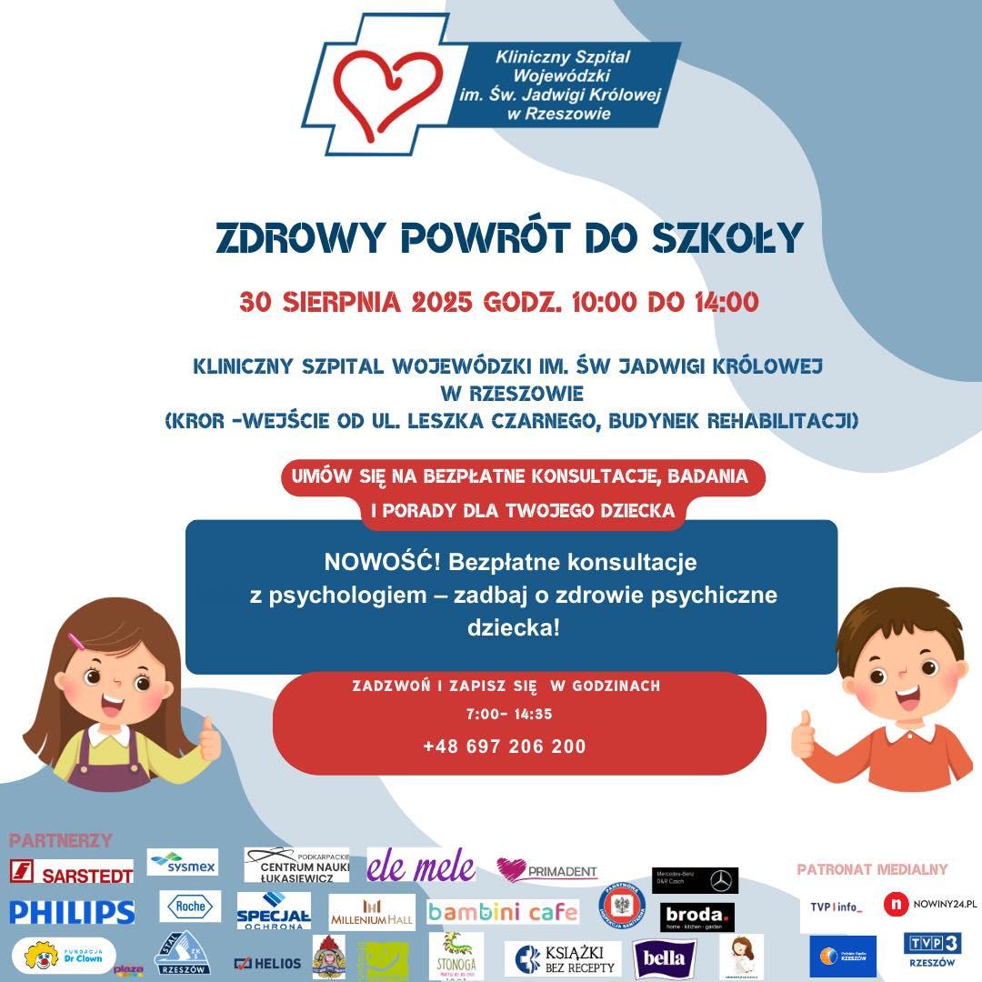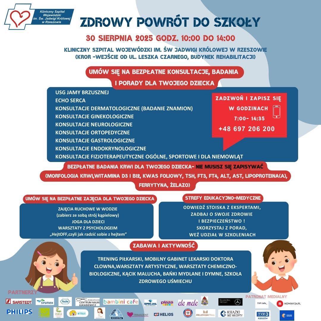 – Już 30 sierpnia (sobota) od 10:00 do 14:00 odbędzie się IV edycja akcji „Zdrowy Powrót do Szkoły” w Klinicznym Szpitalu Wojewódzkim im. Św. Jadwigi Królowej w Rzeszowie – czytamy w komunikacie szpitala na Facebooku.