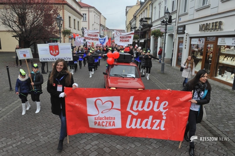 Tłum, który szedł w marszu dobrych i hojnych serc, ubrany m.in. w czerwone koszulki Szlachetnej Paczki, trzymał w rękach transparenty z napisami: „Lubię ludzi”, „Mamy super moc”. Podczas rzeszowskiego marszu został również odczytany manifest Szlachetnej Paczki po śląsku.