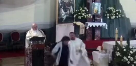 Do szokującego zdarzenia doszło w konkatedrze w Lubaczowie na Podkarpaciu. W trakcie mszy świętej mężczyzna rzucił butelką w stronę ołtarza. Skandaliczny incydent miał miejsce podczas uroczystości Bożego Ciała. Szokujące zdarzenie podczas mszy świętej W trakcie mszy świętej na ołtarzu znajdowało się dwóch księży. Jeden z nich czytał Ewangelię, a wtedy w kierunku ołtarza ruszył bosy … Czytaj dalej Skandaliczny incydent podczas Bożego Ciała. Doszło do szarpaniny z księdzem [WIDEO]