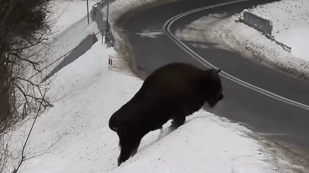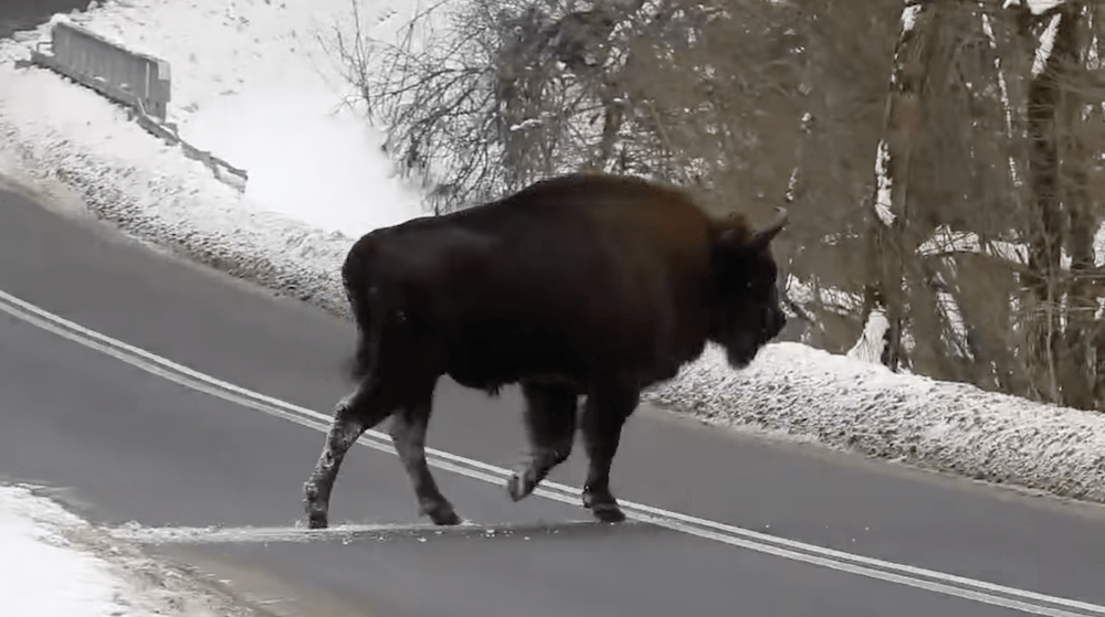 Krótki film, który pojawił się w mediach społecznościowych niespełna dobę temu, błyskawicznie przykuł uwagę tysięcy odbiorców. Widać na nim samotnego, potężnego żubra, który z niezwykłą gracją – mimo swoich gabarytów i zaśnieżonej skarpy – wchodzi na asfaltową drogę, by po chwili zniknąć w gęstwinie po drugiej stronie jezdni.