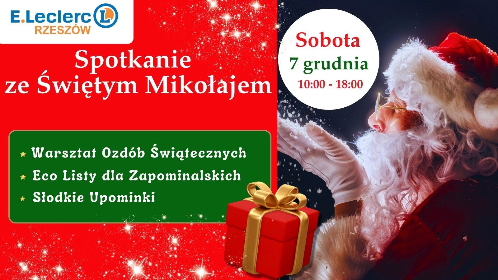 W sobotę, 7 grudnia hipermarket E. Leclerc Rzeszów zaprasza na spotkanie ze Świętym Mikołajem. Przewidzianych jest wiele atrakcji dla dzieci.