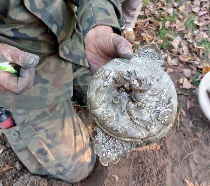 Oprócz srebra znaleziono m.in. monety z czasów Augusta III Sasa i francuski pocisk artyleryjski z I wojny światowej.