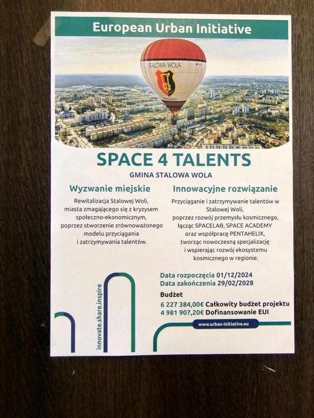 SPACE 4 TALENTS to projekt o skali europejskiej. Stalowa Wola znalazła się w gronie 112 miast, które aplikowały o środki finansowe z Europejskiej Inicjatywy Miejskiej, dołączając tym samym do takich metropolii jak Amsterdam, Kopenhaga czy Mediolan.