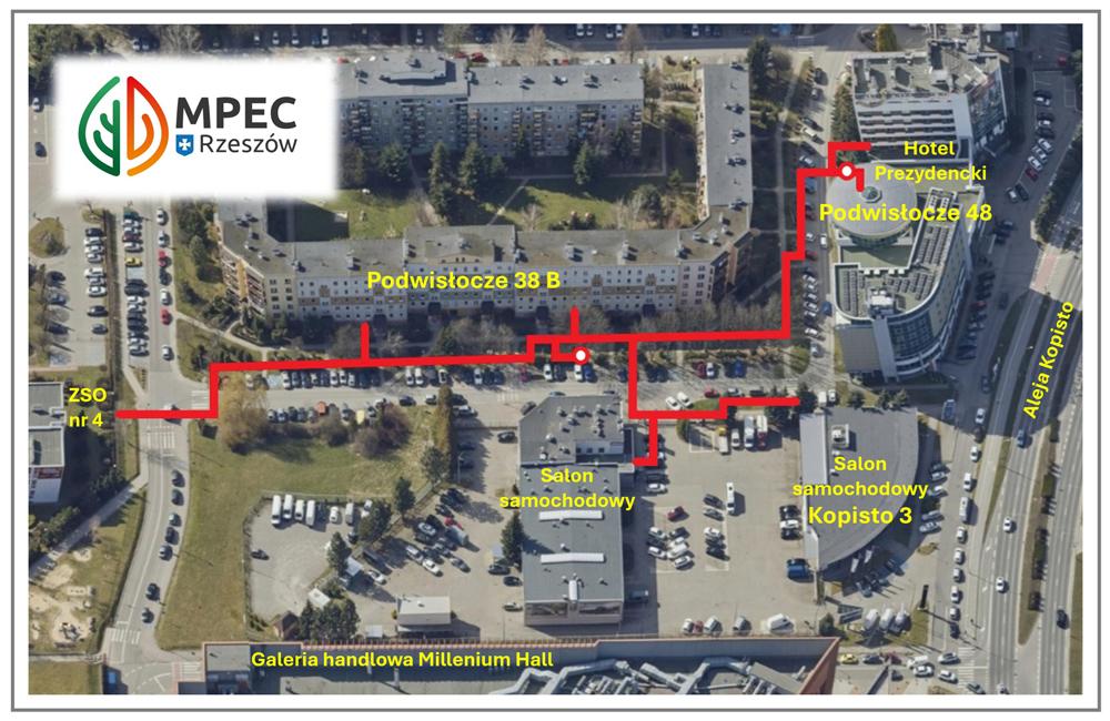 W ramach inwestycji MPEC przeniesie sieć z jezdni pod chodnik przy ul. Podwisłocze 38B i wykona dwa nowe przyłącza. Nowa sieć zasili też dwa salony samochodowe przy ul. Kopisto 3 oraz hotel przy Podwisłoczu 48. Łączna długość nowego odcinka to prawie 390 metrów. Wykorzystane rury mają średnicę od 40 do 150 mm.