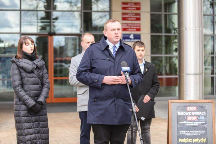 – Nasza petycja ma na celu podjęcie działań, aby na Podkarpaciu nie przyjmowano imigrantów i nie powstawały tu centra integracji cudzoziemców – mówił podczas konferencji Kowalski.