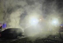 Nocny pożar samochodów w Rzeszowie. Spłonęło jedno auto, dwa uszkodzone