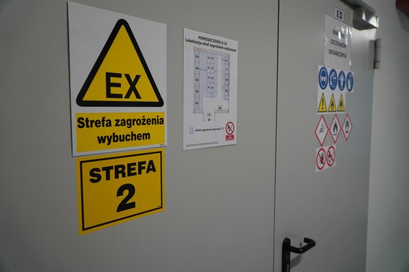 Szczególne wymogi bezpieczeństwa obowiązują w strefie zagrożenia wybuchem (Ex 2), gdzie całe wyposażenie musi być zgodne z rygorystyczną dyrektywą ATEX. Jak wyjaśniła dr inż. Szpiłyk, w pomieszczeniu tym nie mogą gromadzić się ładunki elektryczne ani nie może dochodzić do iskrzenia.