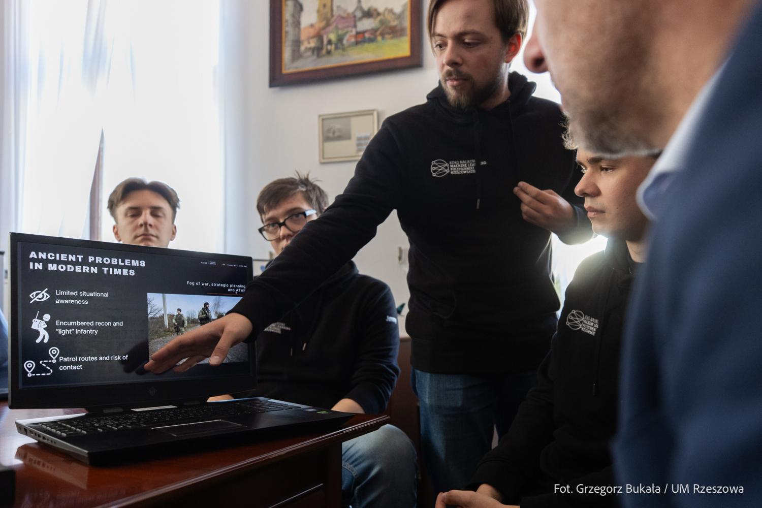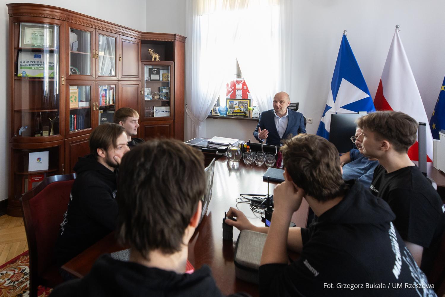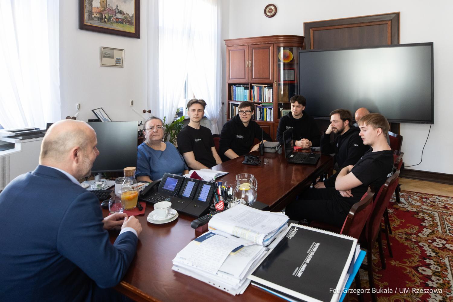 Zdjęcie: Spotkanie studentów PRz z prezydentem Rzeszowa ws. systemu antydronowego (fot. Grzegorz Bukała / Urząd Miasta Rzeszowa)