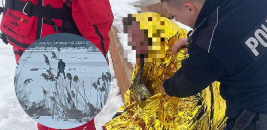 Szokujące sceny w Rzeszowie. Pijany mężczyzna spacerował po zamarzniętym Wisłoku