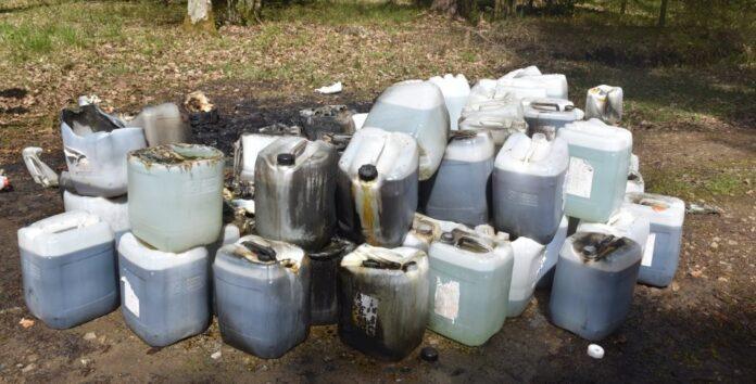 Nieznani sprawcy porzucili i podpalili kilkadziesiąt pojemników z nieznaną substancją chemiczną w lesie w powiecie stalowowolskim. Służby natychmiast wkroczyły do akcji – zabezpieczyły teren i rozpoczęły działania, które mają ograniczyć skażenie środowiska. Policjanci pracują nad ustaleniem tożsamości osób odpowiedzialnych za ten groźny incydent.