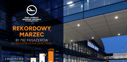Lotnisko Rzeszów-Jasionka zakończyło marzec z rekordowym wynikiem 81 792 pasażerów. To o 21 procent więcej niż w tym samym okresie ubiegłego roku. Od początku roku port obsłużył już ponad 200 tysięcy podróżnych. Port lotniczy w Jasionce wzmacnia swoją pozycję na lotniczej mapie kraju. Rosnąca liczba pasażerów pokazuje, że lotnisko Rzeszów-Jasionka staje się ważnym punktem komunikacyjnym … Czytaj dalej Takiego marca jeszcze nie było! Wiemy ilu pasażerów przewinęło się przez Jasionkę