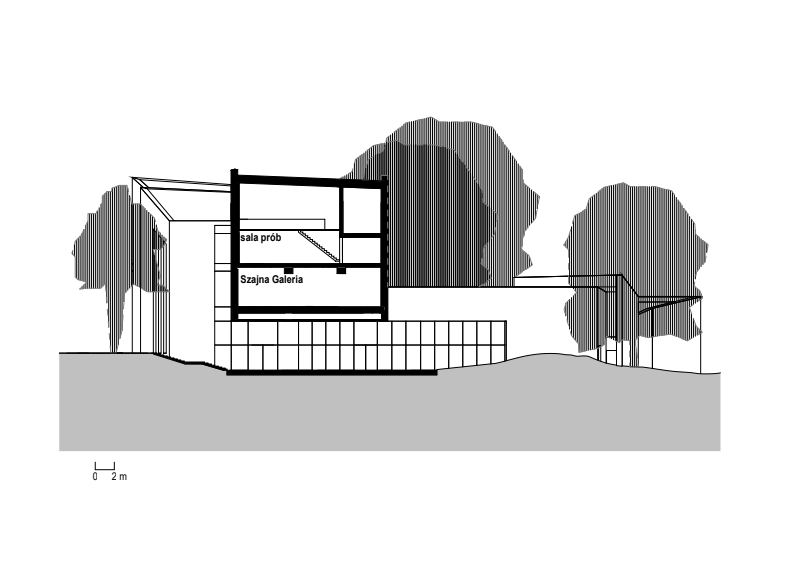 Na piętrze projektu znajduje się Szajna Galeria. Jest to przestrzeń wystawiennicza z niezależnym wejściem, ulokowana w wysuniętym fragmencie budynku, który zawieszony nad przejściem zachęca do wejścia do środka. Co ważne, galeria poświęcona jest twórczości Józefa Szajny. Ten wybitny artysta, scenograf i reżyser w latach 50. współtworzył scenę Teatru im. Wandy Siemaszkowej.