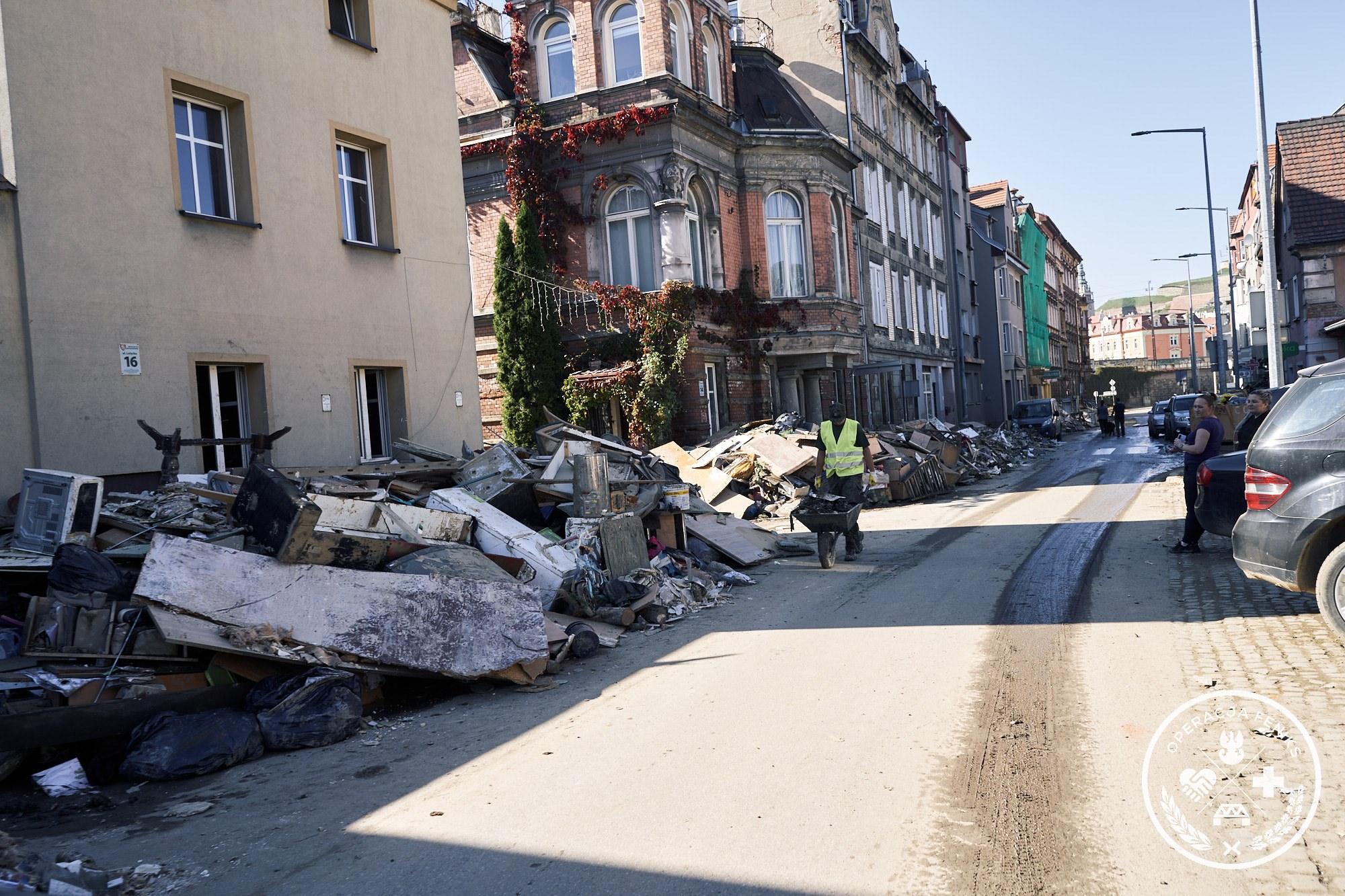 Żołnierze 3 Podkarpackiej Brygady Obrony Terytorialnej od pierwszych dni powodzi pomagają powodzianom z południa Polski. na południu Polski. Udrażniają dróg, usuwają gruz i odpady, wywożą śmieci na wysypiska, a także czyszczą zalane domy i podwórka.