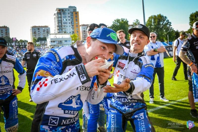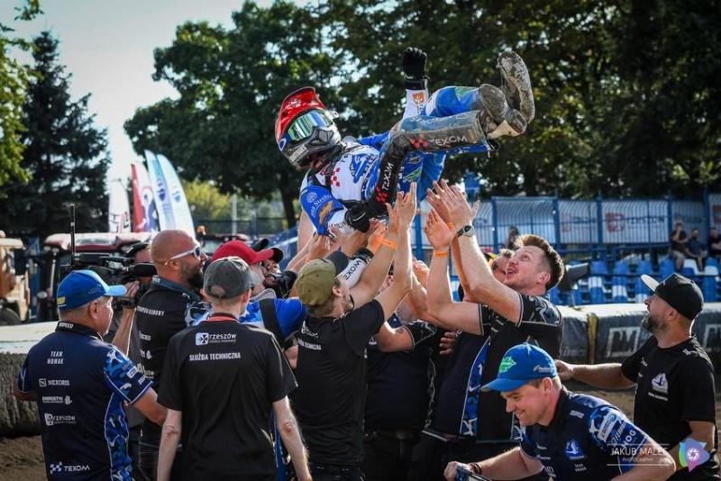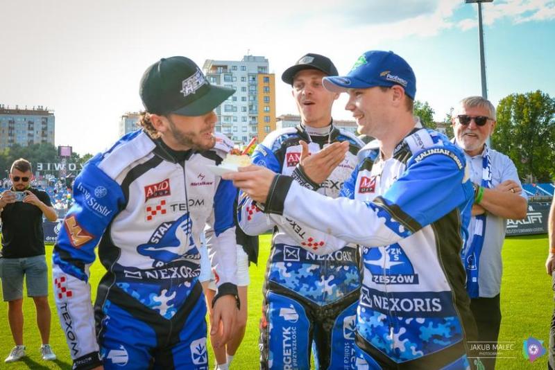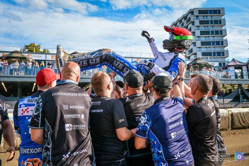 Teraz Texom Stal Rzeszów może hucznie świętować zwycięstwo z 18-krotnym mistrzem Polski. Już po samym meczu żużlowcy unosili się pod niebo, wyrzucani w górę rękami swojego zespołu. To zwycięstwo jest też w pewnym stopniu prezentem dla kapitana drużyny, Marcina Nowaka, który w poniedziałek, 18 sierpnia obchodzi urodziny. Mężczyzna ma wiele powodów do radości, jak chociażby swój godny kapitana występ.