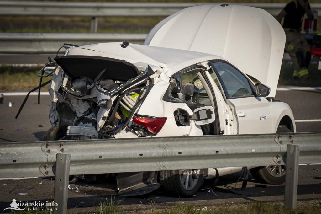 Przed zjazdem na Miejsce Obsługi Podróżnych Jeżowe czarna skoda wjechała z dużą siłą w tył białej skody, którą jechała dziennikarka.