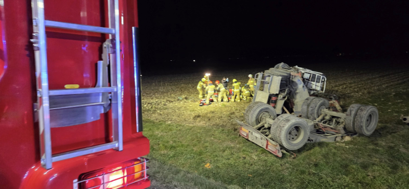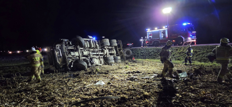 Jak informuje aspirant sztabowy Anna Oleniacz, w ciężarowym Volvo prowadzonym przez 42-letniego mężczyznę, nagle doszło do rozerwania jednej z opon. – Kierujący samochodem ciężarowym jadąc w kierunku Sanoka utracił panowanie nad pojazdem i zjechał z drogi przewracając go na bok – przekazuje rzeczniczka Komendy Powiatowej Policji w Sanoku.