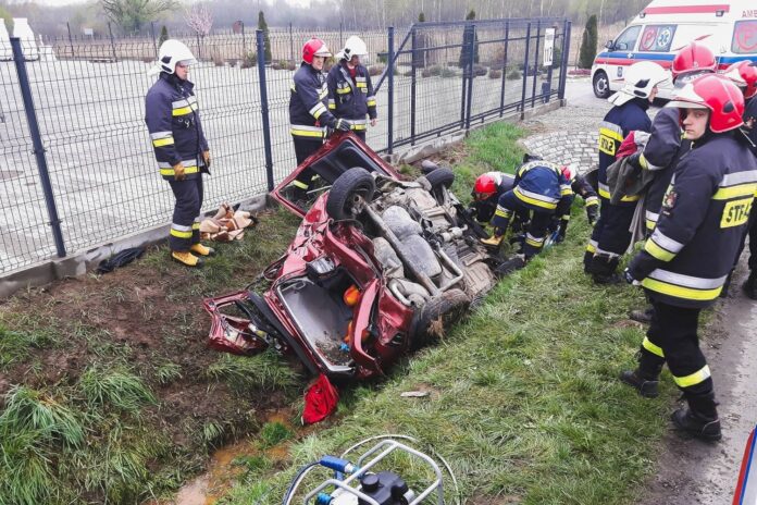Wypadek wydarzył się po godz. 14:00. Ze wstępnych ustaleń wynika, że kierowca volkswagena polo, wyjeżdżając z drogi podporządkowanej, nie ustąpił pierwszeństwa audi. Przybyli na miejsce strażacy, musieli użyć specjalistycznego sprzętu, aby wydostać z uszkodzonego polo kierowcę i pasażerkę.