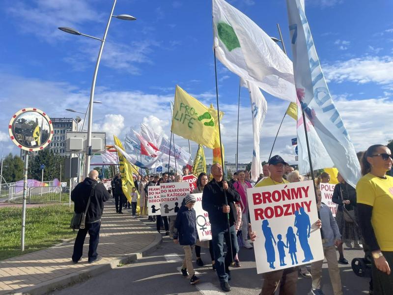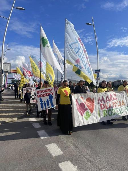 Uczestnicy marszu nieśli transparenty z napisami m.in. „Małżeństwo tylko między kobietą i mężczyzną”, „Prawo do narodzin dla każdego dziecka”, „Stop gender”, „Broniąc życia, bronimy przyszłości”, „Polsko, walcz o swoje dzieci”, „Dziecko skarbem jest rodziny”.