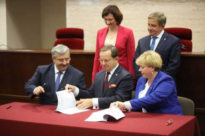 We wtorek do Urzędu Marszałkowskiego w Rzeszowie przyjechało kilkunastu samorządowców, którzy reprezentowali gminy wchodzące w skład Podmiejskiej Kolei Aglomeracyjnej. W imieniu Rzeszowa umowę podpisał wiceprezydent Marek Ustrobiński.