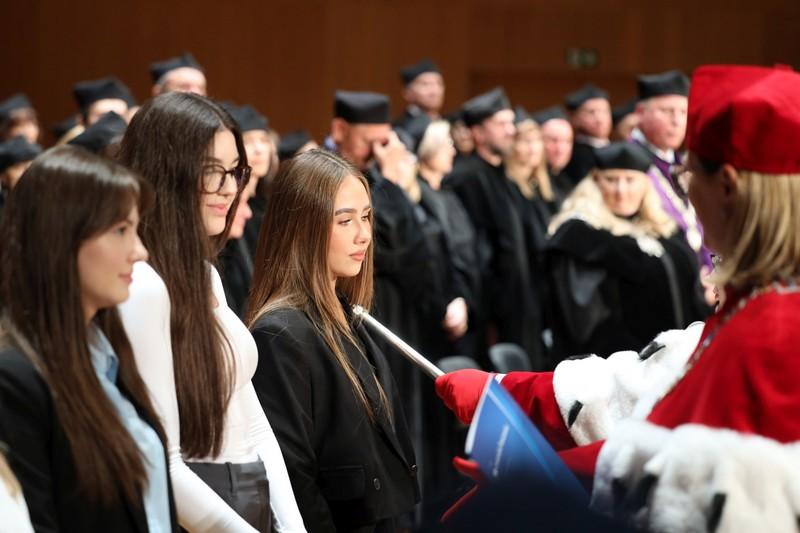 Tę część uroczystości poprowadziła prof. dr hab. Sabina Grabowska, prorektor ds. Studenckich i Kształcenia. Do grona akademickiej społeczności dołączyli również doktoranci rozpoczynający kształcenie w Szkole Doktorskiej. Ceremonię immatrykulacji doktorantów poprowadziła dr hab. Marta Łuszczak prof. UR, Dyrektor Szkoły Doktorskiej.