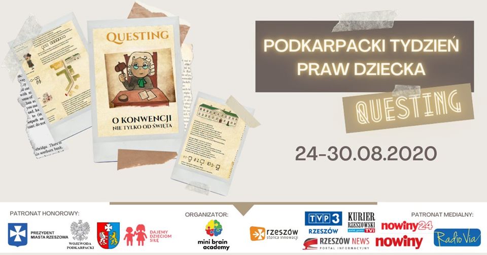 Stąd pomysł na organizację w Rzeszowie Podkarpackiego Tygodnia Praw Dziecka, który odbędzie się w dniach 24-30 sierpnia. Każdy, kto w ostatni tydzień sierpnia odwiedzi Rzeszów, będzie mógł pobrać specjalnie przygotowany na tę okazje questing, czyli swego rodzaju grę terenową.