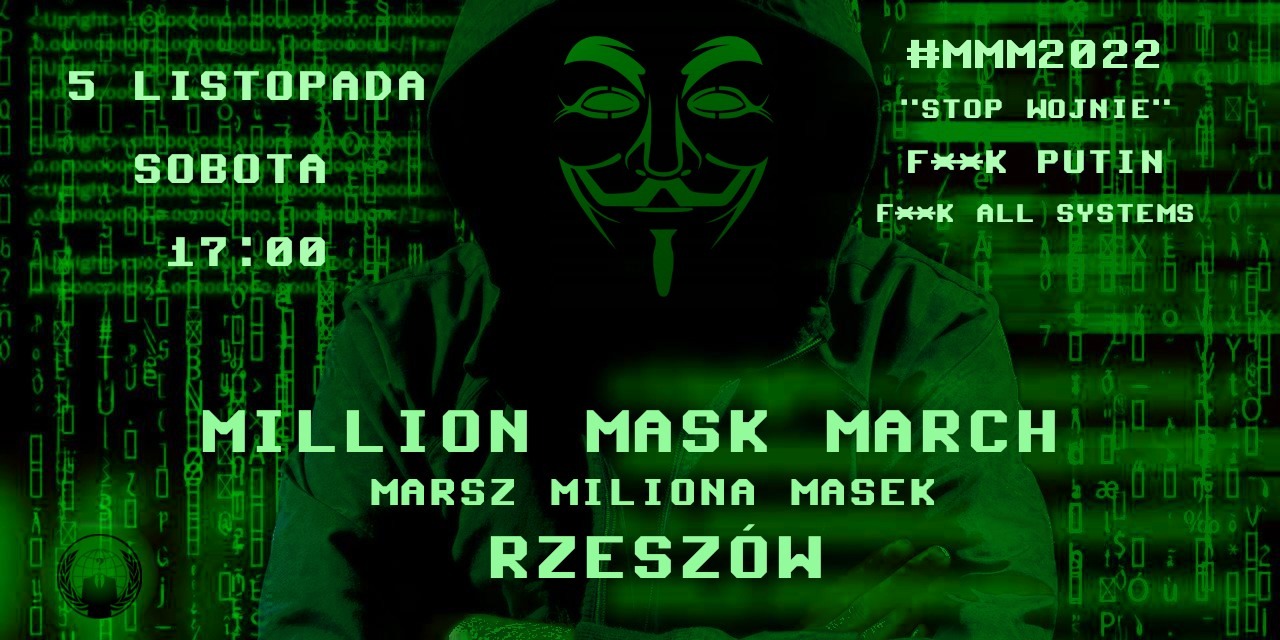 “Stop wojnie”, “Fuck Putin”, “Fuck all systems” – pod takim hasłami w sobotę w Rzeszowie przejdzie Marsz Miliona Masek, który co roku, 5 listopada, organizowany jest w kilkudziesięciu krajach na świecie przez Anonymous.