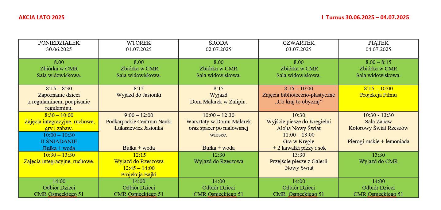 - Turnus 1: 30 czerwca – 4 lipca 2025
