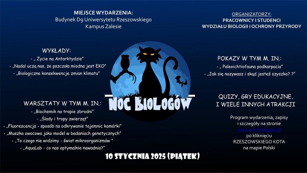 W piątek, 10 stycznia odbędzie się już XIV edycja, ogólnopolskiej akcji Noc Biologów. Z tej okazji studenci, doktoranci i pracownicy Wydziału Biologii i Ochrony Przyrody Uniwersytetu Rzeszowskiego zapraszają wszystkich entuzjastów przyrody do uczestniczenia w tym wydarzeniu.