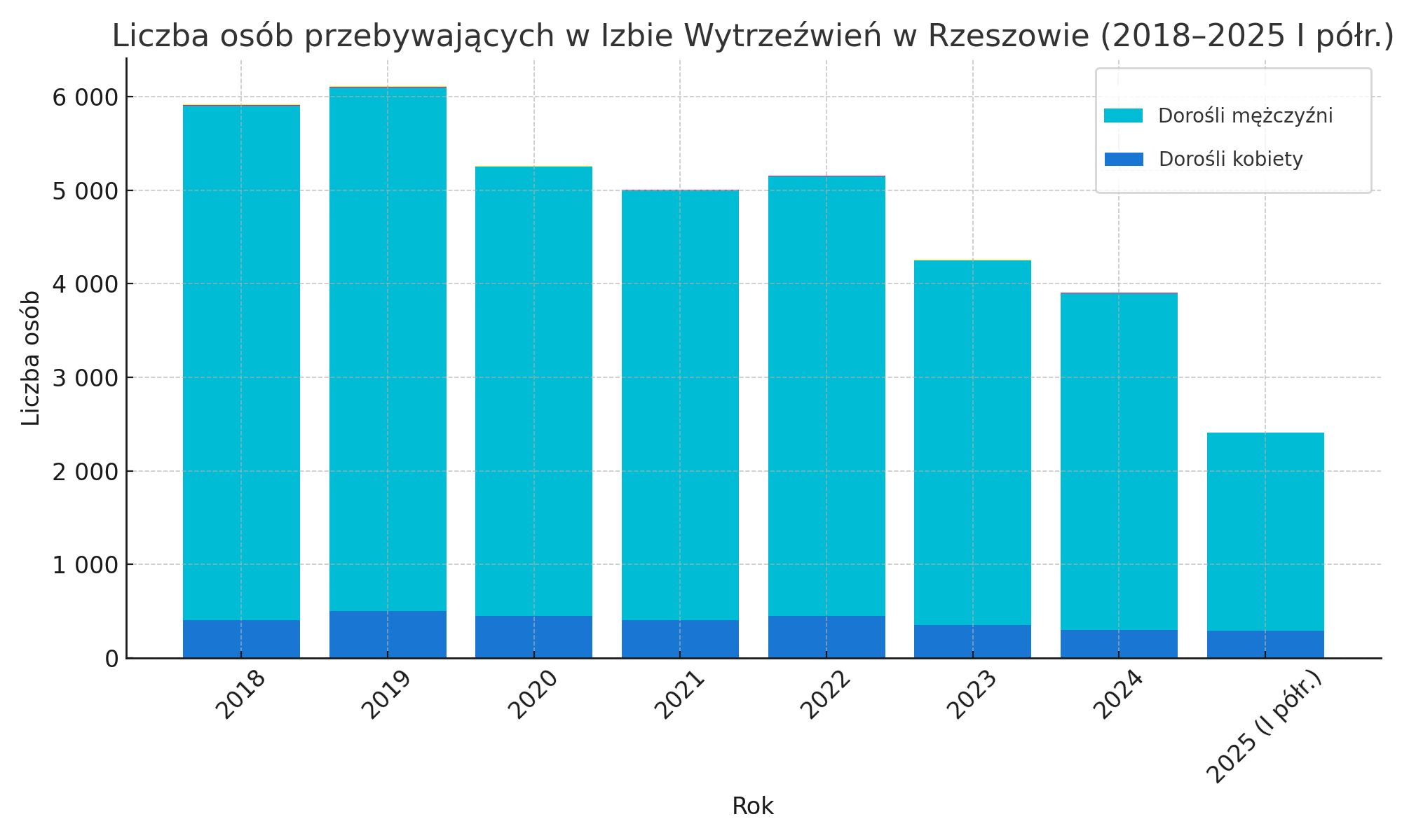 Po kilku latach, w których statystyki rzeszowskiej Izby Wytrzeźwień napawały optymizmem, pierwsze półrocze 2025 roku przyniosło niepokojącą zmianę. Od stycznia do czerwca do placówki trafiło 2406 osób, podczas gdy w analogicznym okresie ubiegłego roku było ich 2092. To wyraźny sygnał, że problem nadużywania alkoholu w regionie nie maleje.