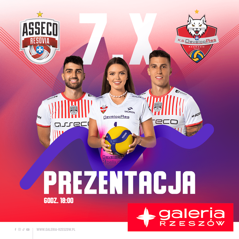Już dziś (wtorek, 7 października) o godz. 18:00 w Galerii Rzeszów odbędzie się uroczysta, wspólna prezentacja dwóch flagowych drużyn miasta: KS Developres Rzeszów i Asseco Resovii Rzeszów przed startem nowego sezonu. Na kibiców czeka moc atrakcji.