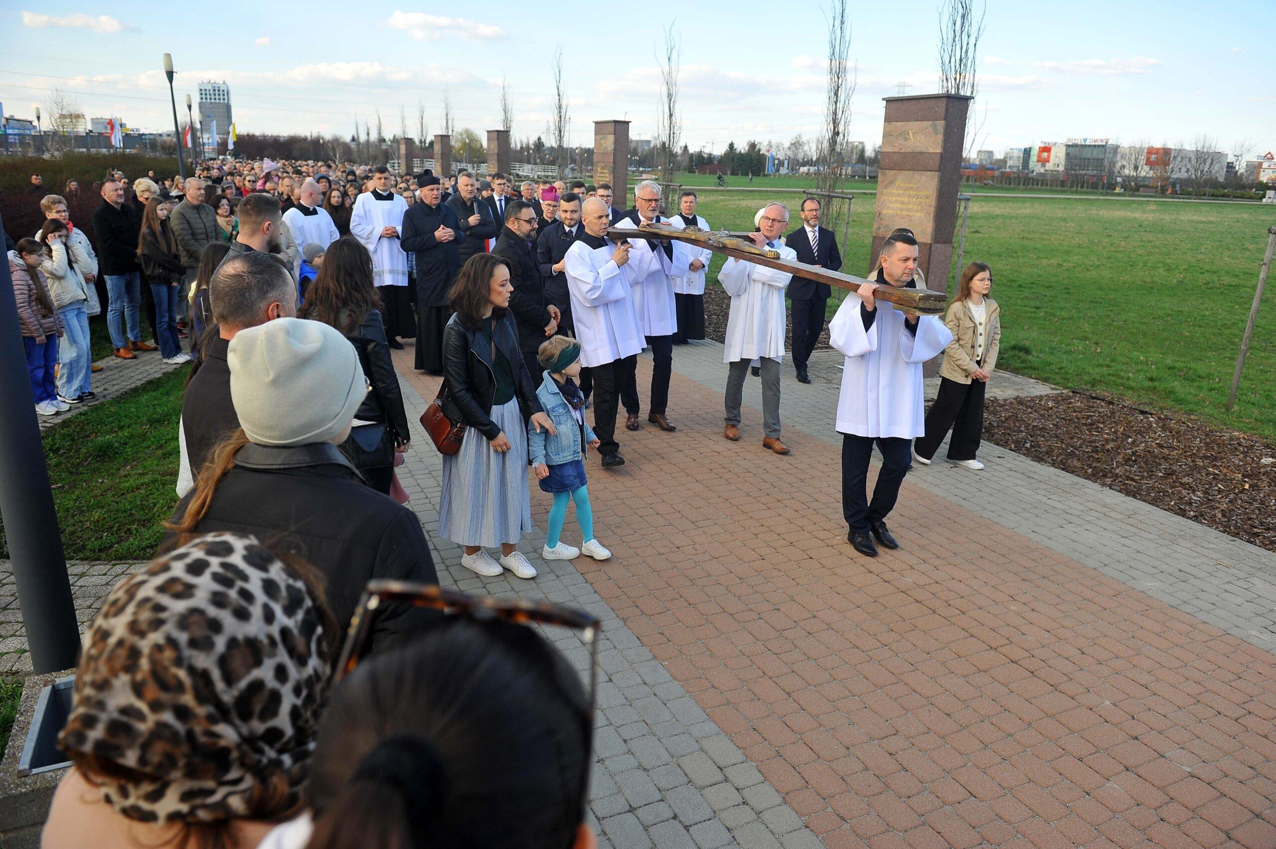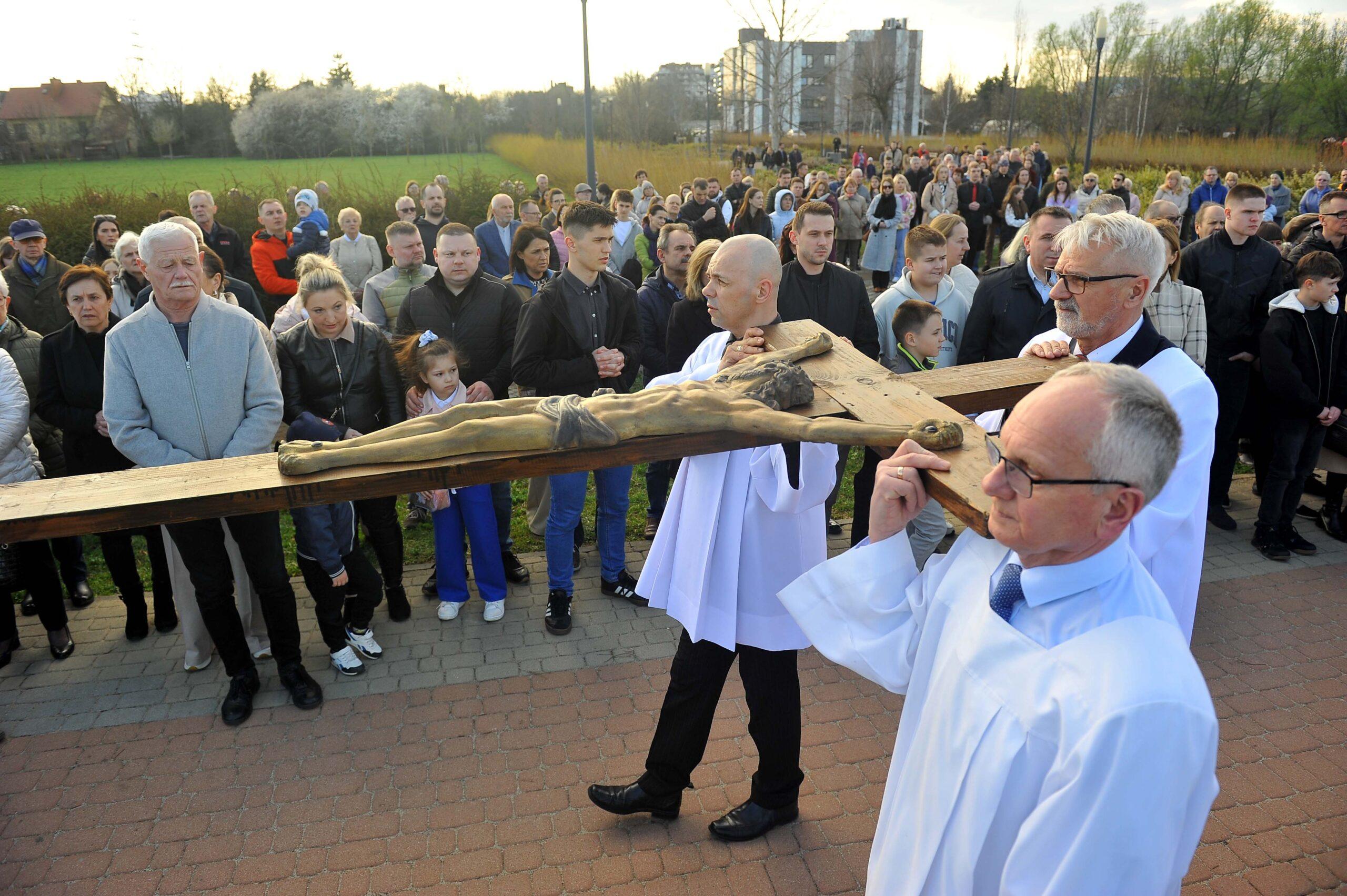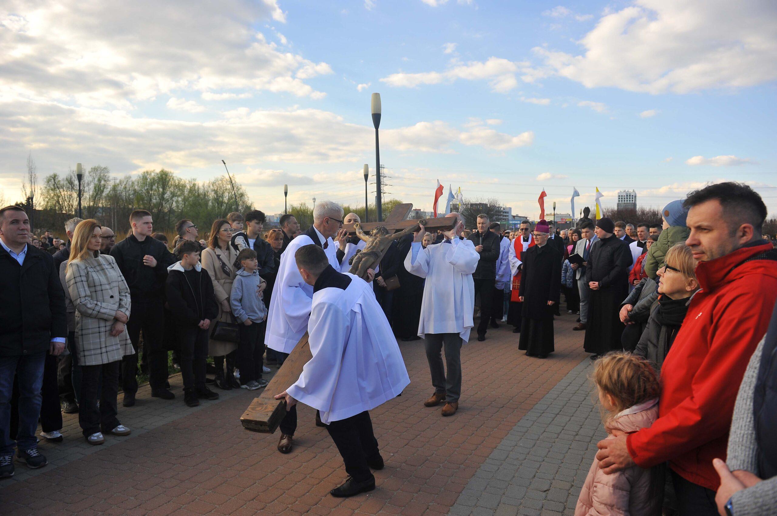 W piątkowe popołudnie oczy wielu mieszkańców skierowały się na Park Papieski, gdzie punktualnie o godzinie 17:00 rozpoczęła się uroczysta Droga Krzyżowa. To właśnie tam, na otwartej przestrzeni, wierni mogli wspólnie przejść symboliczną drogę Chrystusa na Golgotę. W skupieniu, często w ciszy, uczestnicy rozważali kolejne stacje, niosąc w sercach własne intencje.