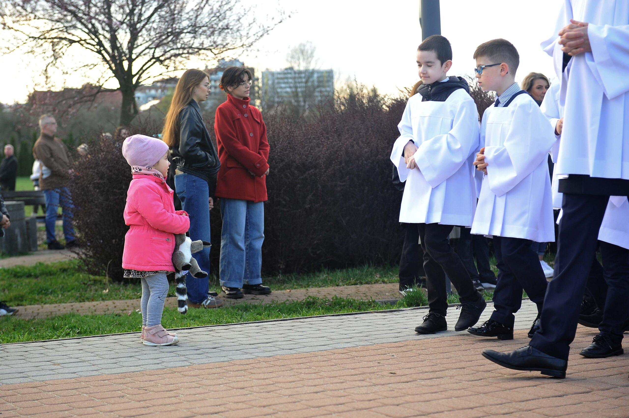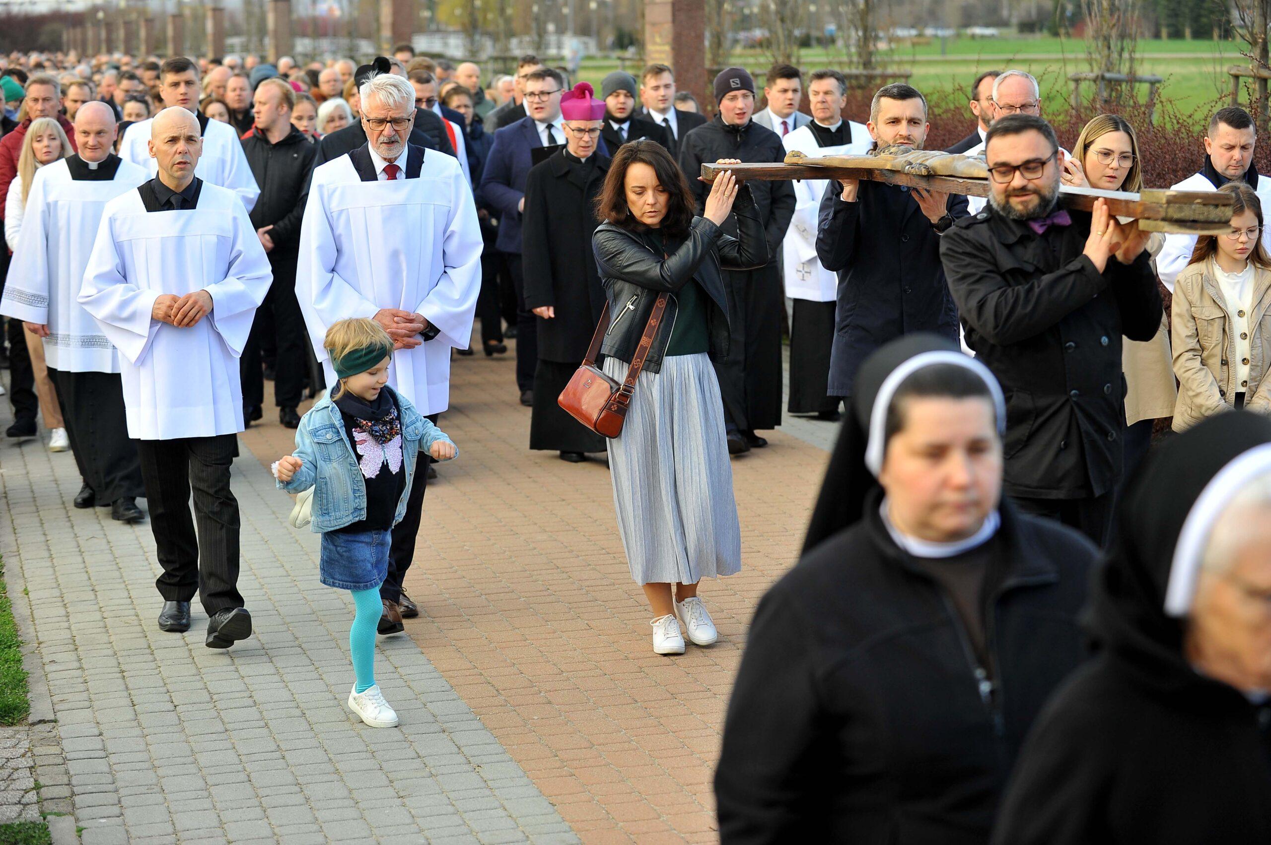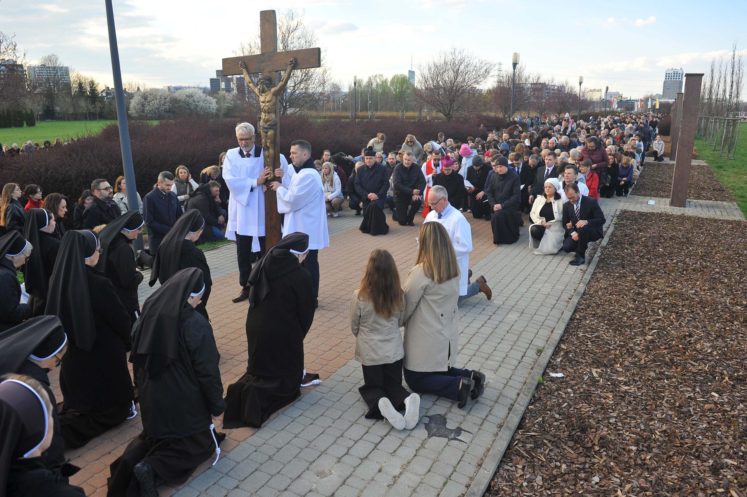W piątkowe popołudnie oczy wielu mieszkańców skierowały się na Park Papieski, gdzie punktualnie o godzinie 17:00 rozpoczęła się uroczysta Droga Krzyżowa. To właśnie tam, na otwartej przestrzeni, wierni mogli wspólnie przejść symboliczną drogę Chrystusa na Golgotę. W skupieniu, często w ciszy, uczestnicy rozważali kolejne stacje, niosąc w sercach własne intencje.