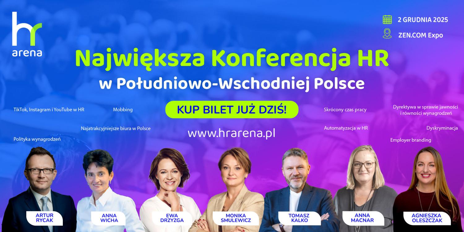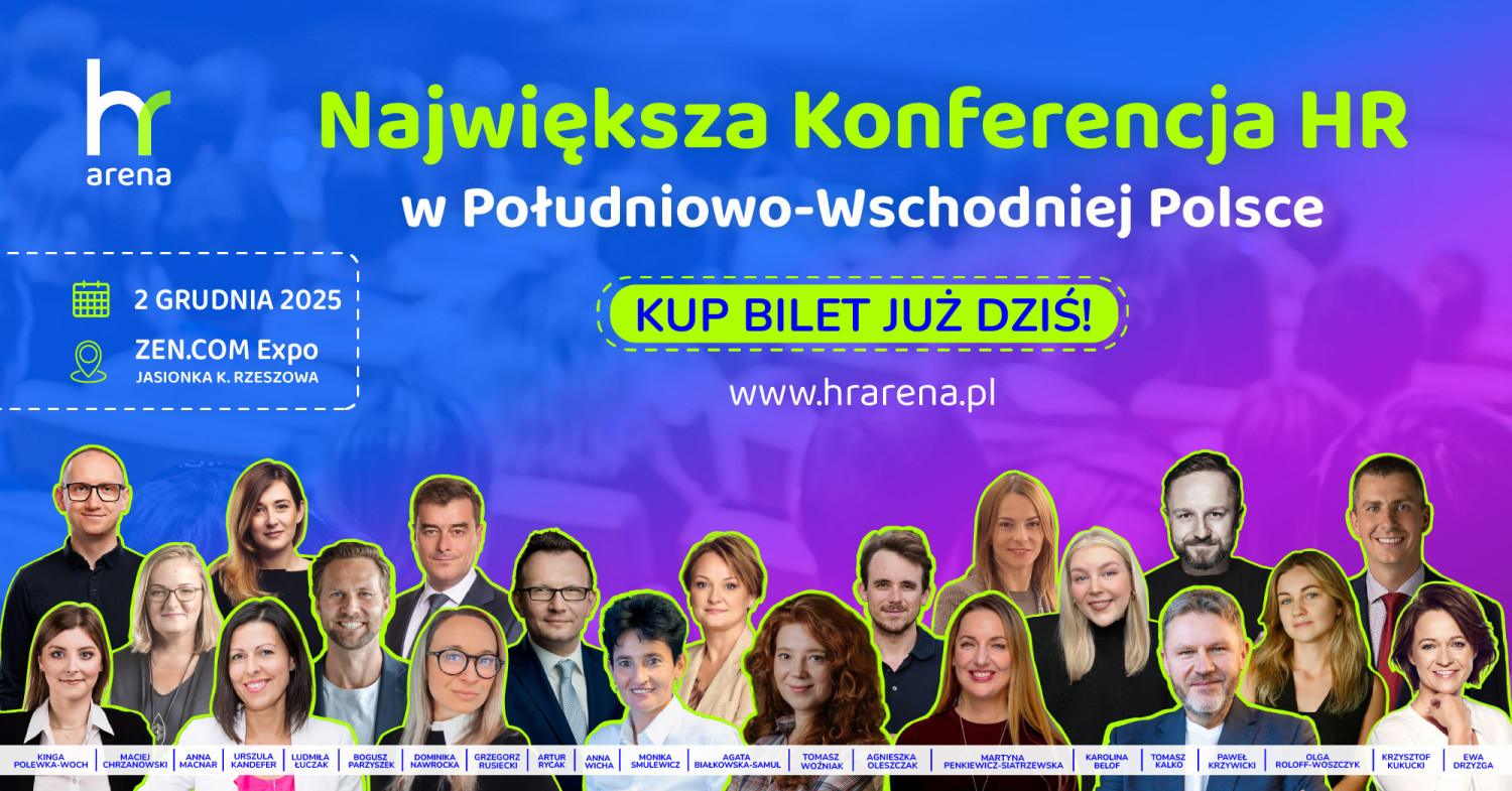 Największe wydarzenie branży HR w południowo-wschodniej Polsce powraca w wyjątkowej odsłonie. Już 2 grudnia w nowoczesnym centrum ZEN.COM Expo w Jasionce koło Rzeszowa odbędzie się 6. edycja konferencji HR ARENA.