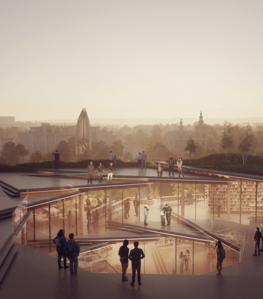 Jak opisują projektanci, idea obiektu opiera się na spiralnej formie „Wiru Słowa”. Ma to być wyjątkowa podróż od foyer po ogrody dachowe, gdzie literatura, światło i natura tworzą płynną, harmonijną całość. Zielone tarasy i ogrody deszczowe mają zwiększyć bioróżnorodność i poprawić mikroklimat, wpisując budynek w parkowe otoczenie.
