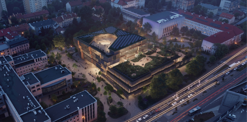 Pracownie Schick Architekci oraz Kengo Kuma & Associates wraz z pracownią architektoniczną TKHolding Truszczyński Kobierzewski połączyli siły, by stworzyć projekt łączący lekkość, światło i organiczne formy. Ta współpraca przyciągnęła uwagę już na starcie, ponieważ Kengo Kuma to światowa legenda architektury, twórca m.in. tokijskiego Stadionu Narodowego.