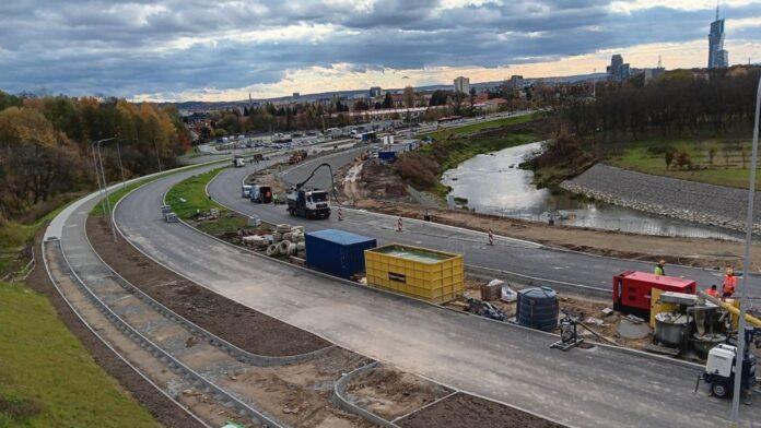 Na budowie Wisłokostrady widać, że inwestycja zbliża się do finału. Drogowcy pracują na odcinku od ul. Siemieńskiego i ul. Maczka w stronę al. Rejtana, gdzie powstaje nowa trasa wzdłuż Wisłoka. Miasto zapowiada, że chce skończyć całość do końca roku, choć pierwotnie mówiono o wiośnie następnego.